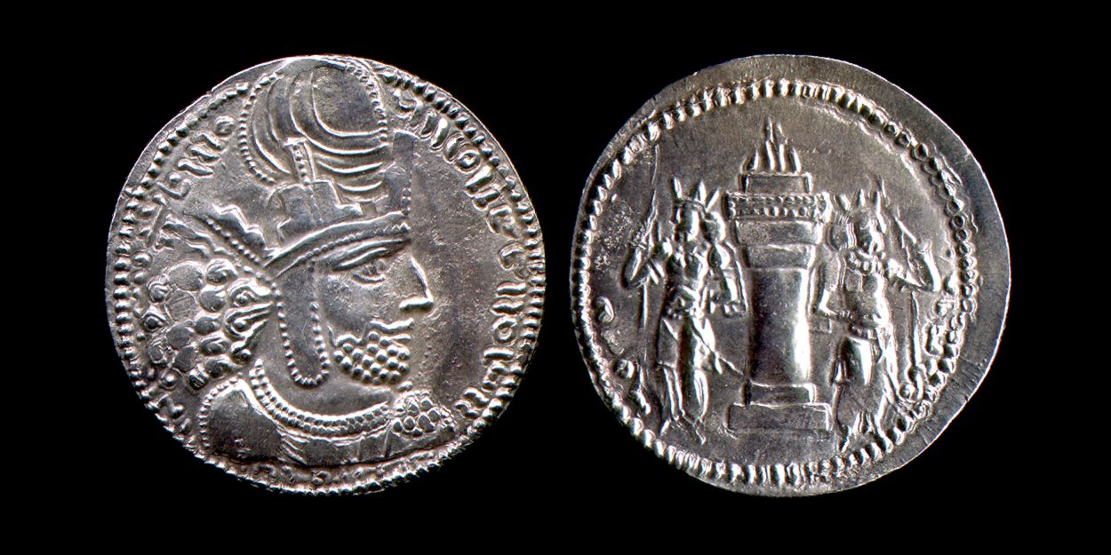 Coin (drachma) of Shapur I with Aramaic inscription, Sassanian period. Aramaic was the official administrative language of pre-Islamic Iranian dynasties, and typically numismatic inscriptions were in Aramaic. i.e Bagi Papaki Malka “Divine King Babak”; Mazdisn Bagi Artahshatr Malkan Malka Airan Minuchitri min Yazdan “The Ahura Mazda-worshipping Divine Artaxerxes, King of the Kings of Iran, heaven-descended of the Gods”.