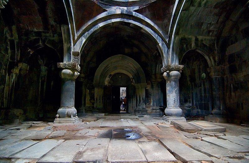 The monastery of Sanahin (left) and its gavit (right), 10th century, Lori province, Armenia. Gavit (Armenian: zhamatun), the distinctive Armenian style of narthex, came to serve as the entrance, mausoleum, and assembly room of many churches throughout Caucasus.